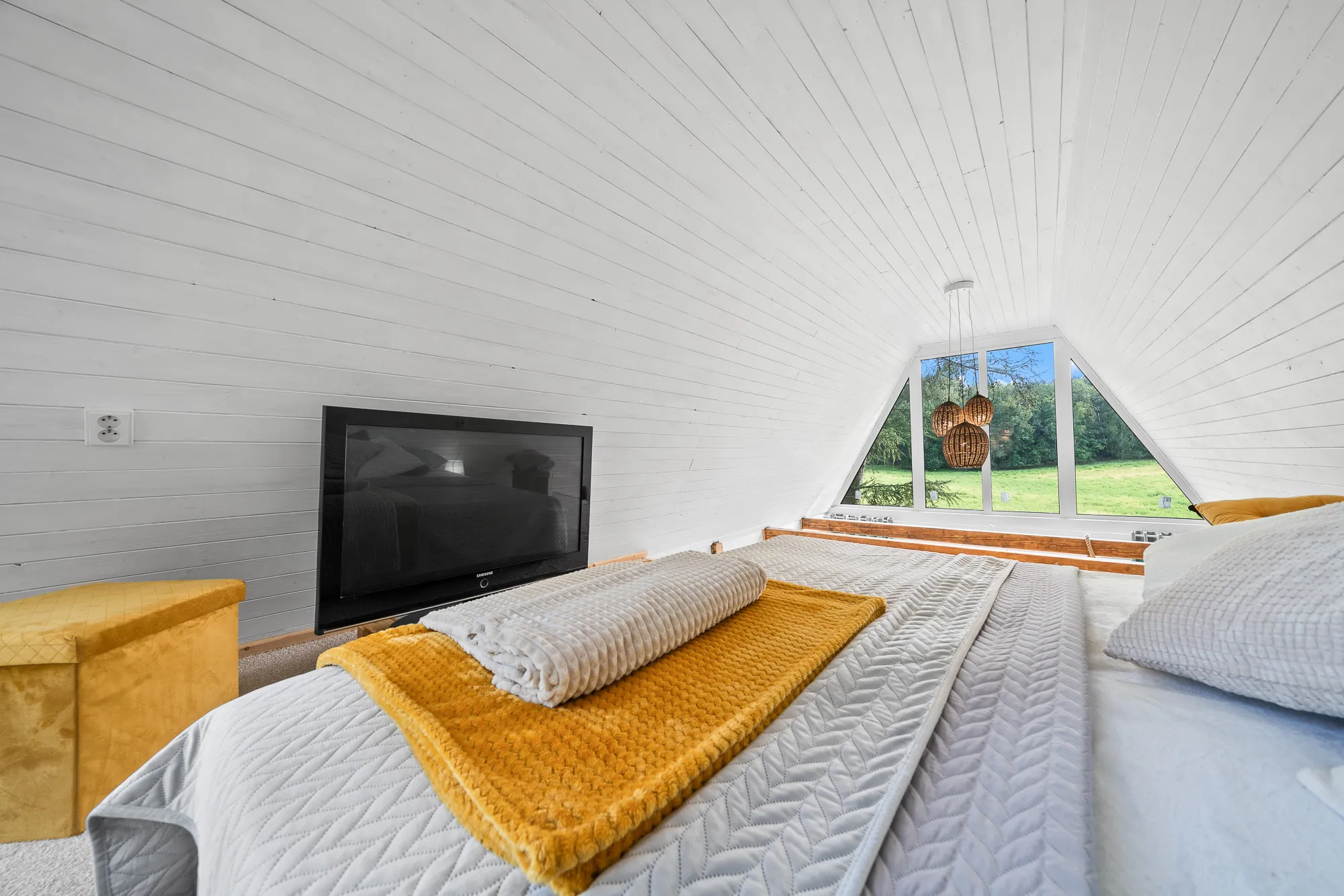 - Patro s postelí a výhledem do krajiny